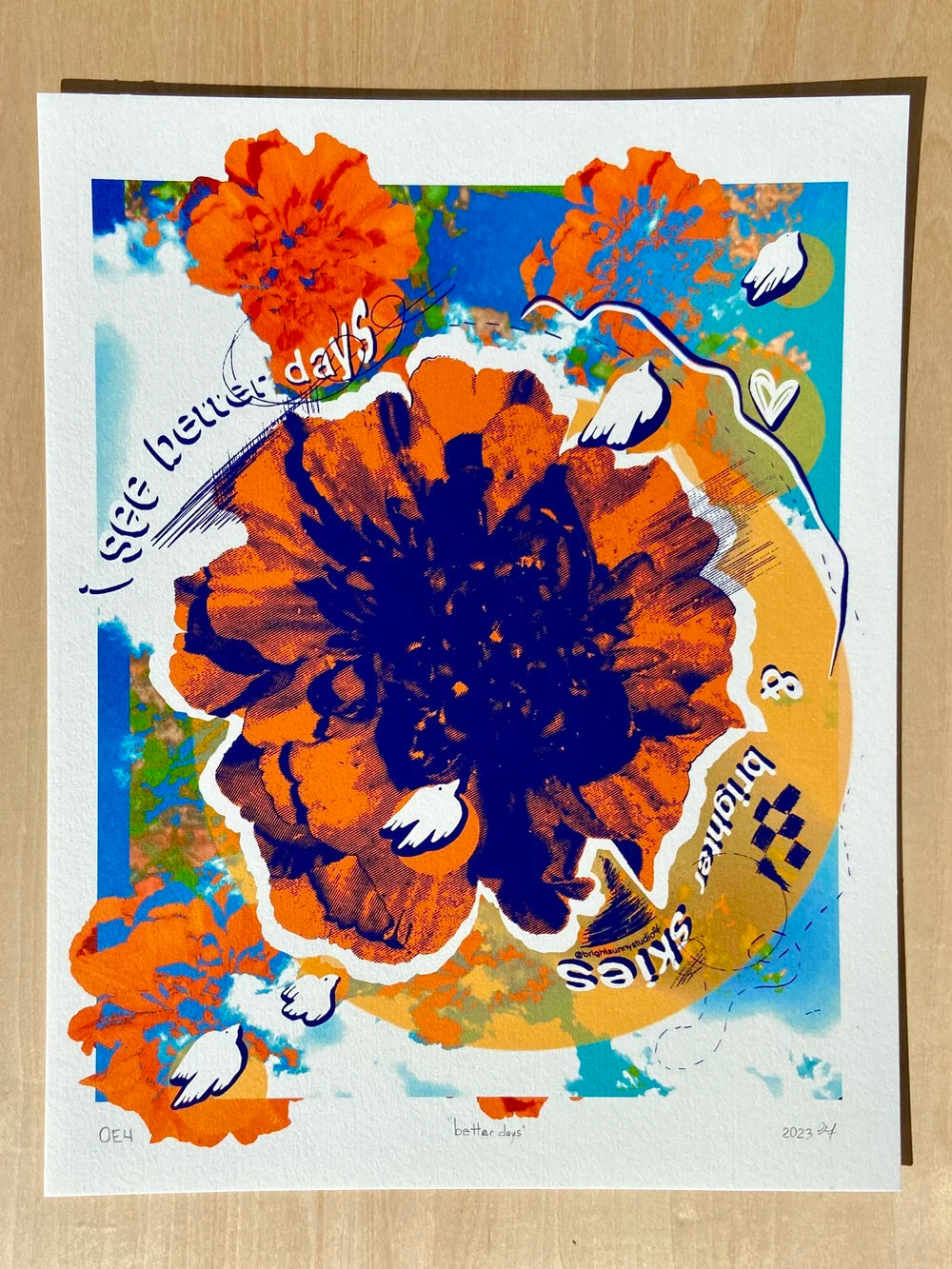 Screen printing: The process of creating each piece begins with a drawing, either by hand or digital. This drawing is then transformed into a digital format suitable for screen printing. Once the digital illustration is ready, it is printed on transparent paper. This is used to make a silk screen stencil by using photosensitive emulsion and a UV light exposure unit. Finally, the design is printed on paper or fabric.