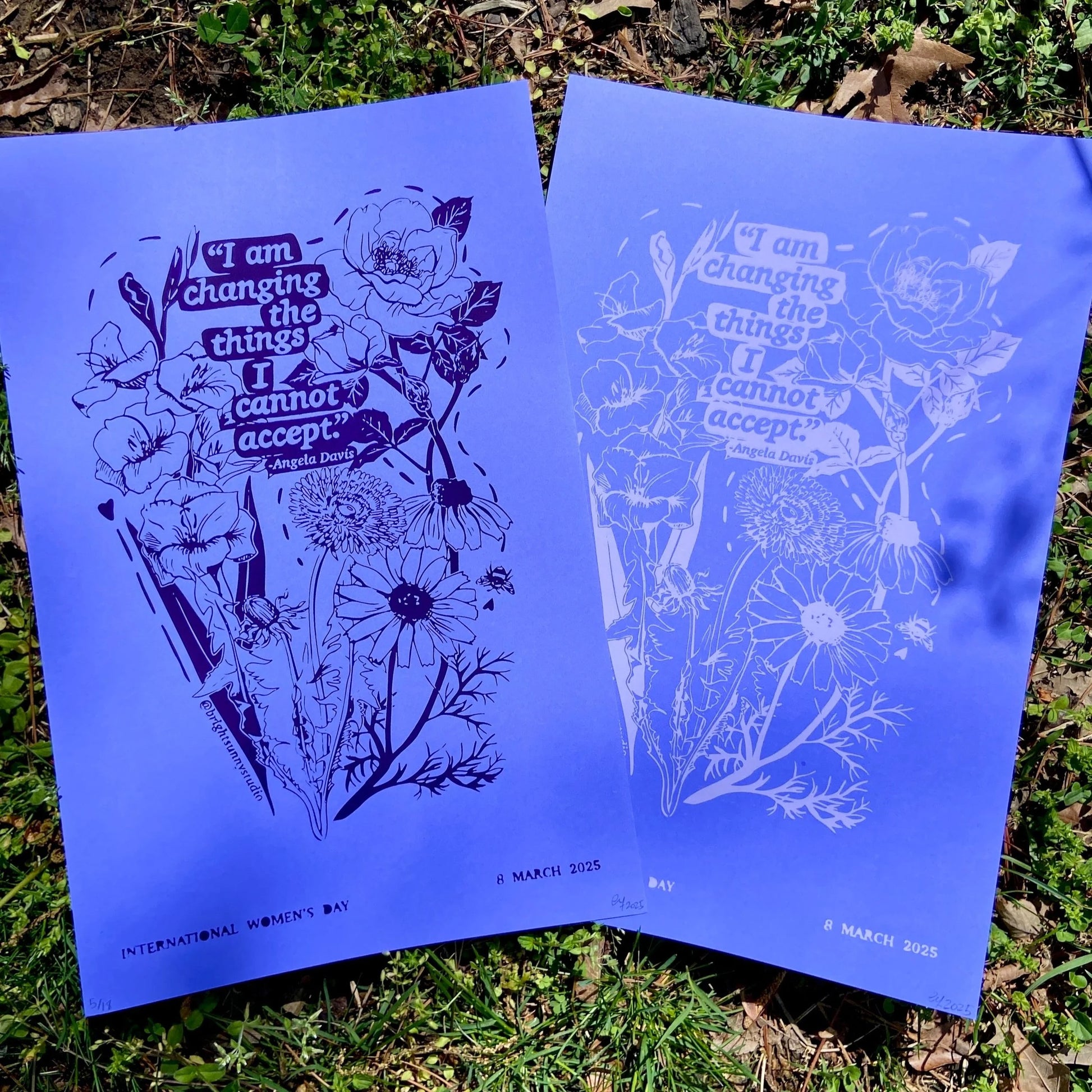 This limited edition screen print poster features a hand drawn design of flowers just as powerful and impactful as the women it celebrates and centers an inspirational and iconic quote from Angela Davis. The design is hand-printed in Durham, NC on acid-free paper with high-quality water-based ink.